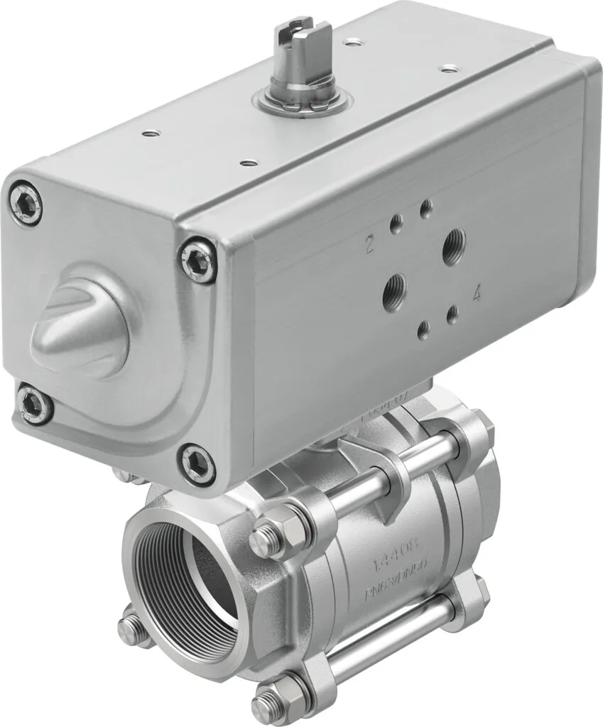 Ball valve actuator unit with double- or single-acting quarter turn actuator DAPS , Stainless steel ball valve , NAMUR connection pattern for solenoid valves/limit switch attachments to VDI/VDE 3845 , Flow is fully opened or closed in both directions , Use in zone 1, 21, 2, 22