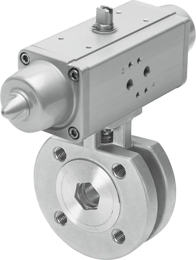 Ball valve actuator unit with double- or single-acting quarter turn actuator DAPS , Stainless steel ball valve in compact design , NAMUR connection pattern for solenoid valves/limit switch attachments to VDI/VDE 3845 , Flow is fully opened or closed in both directions , Use in zone 1, 21, 2, 22