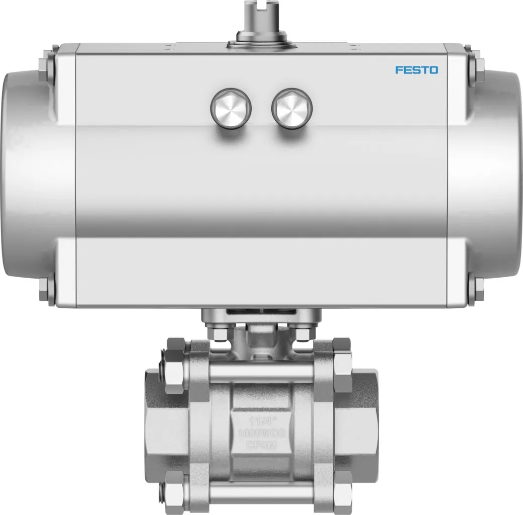 Ball valve actuator unit with double-acting quarter turn actuatorDFPD , Stainless steel ball valve , NAMUR connection pattern for solenoid valves/limit switch attachments to VDI/VDE 3845 , Flow is fully opened or closed in both directions