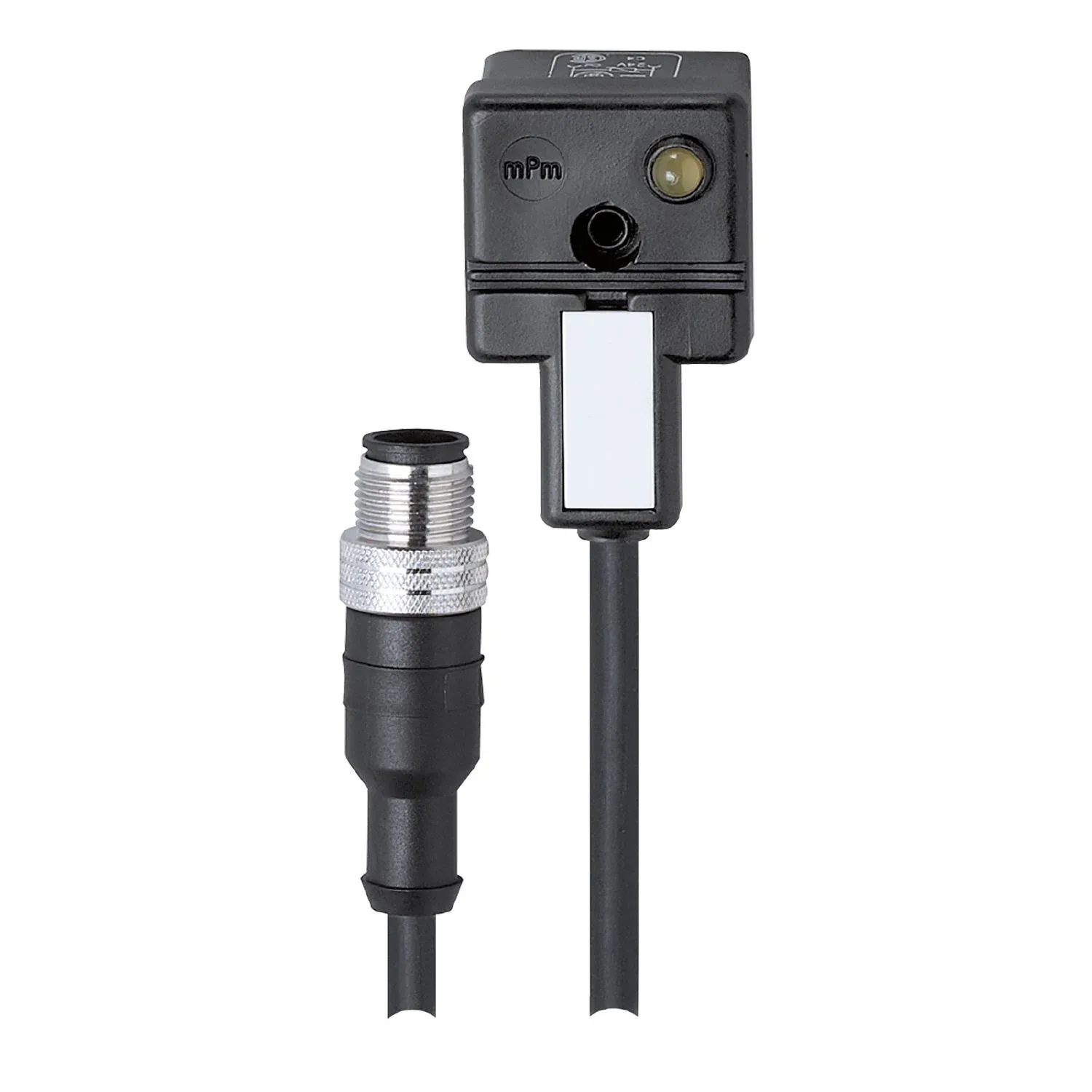 Connector1 x valve type A DIN (EN 175301-803), angled; Moulded body: PUR; Locking: brass, nickel-plated; Contacts: nickel-plated brass; Tightening torque: 0.7...0.9 Nm