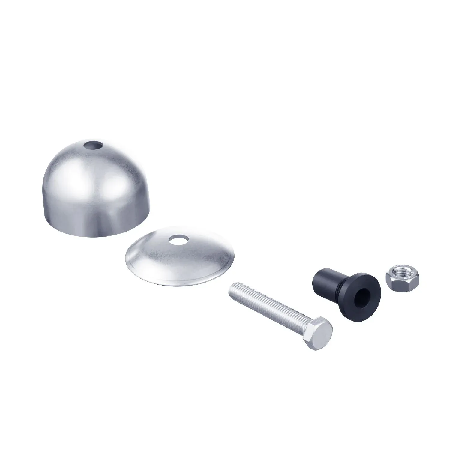 | Materials | half shell: stainless steel (304/1.4301); hemispherical cap: stainless steel (304/1.4301); hexagonal head screw: stainless steel; Hexagon nut: stainless steel; protective sleeve: PP |