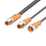 ConnectorM12, straight; coding: A; Moulded body: TPU, orange; Locking: Lock nut, brass, nickel-plated; Contacts: gold-plated; Tightening torque: 0.6...1.5 Nm; Take into account the maximum value of the counterpart!