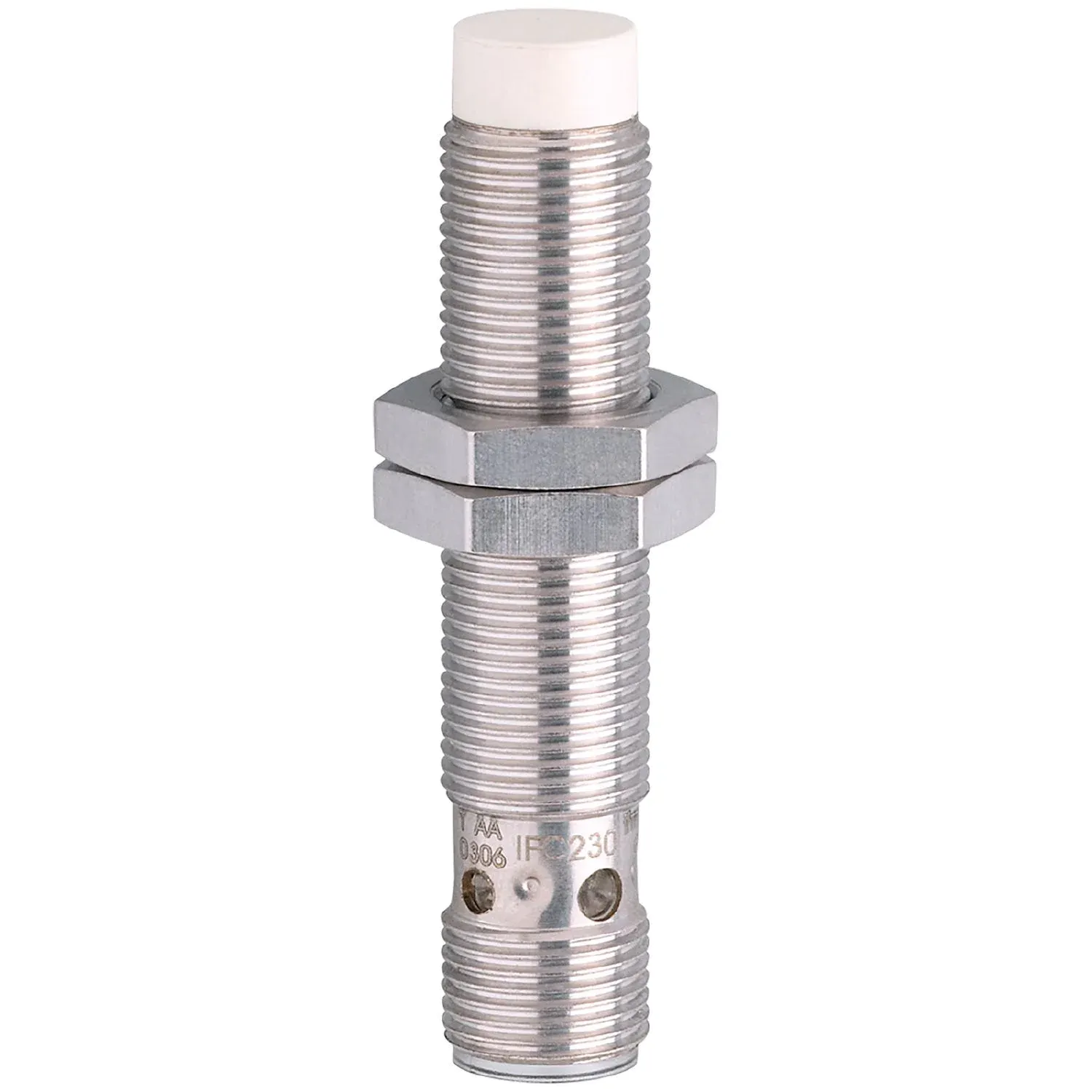 Materialshousing: brass white bronze coated; sensing face: PBT orange; LED window: PEI; lock nuts: brass white bronze coated