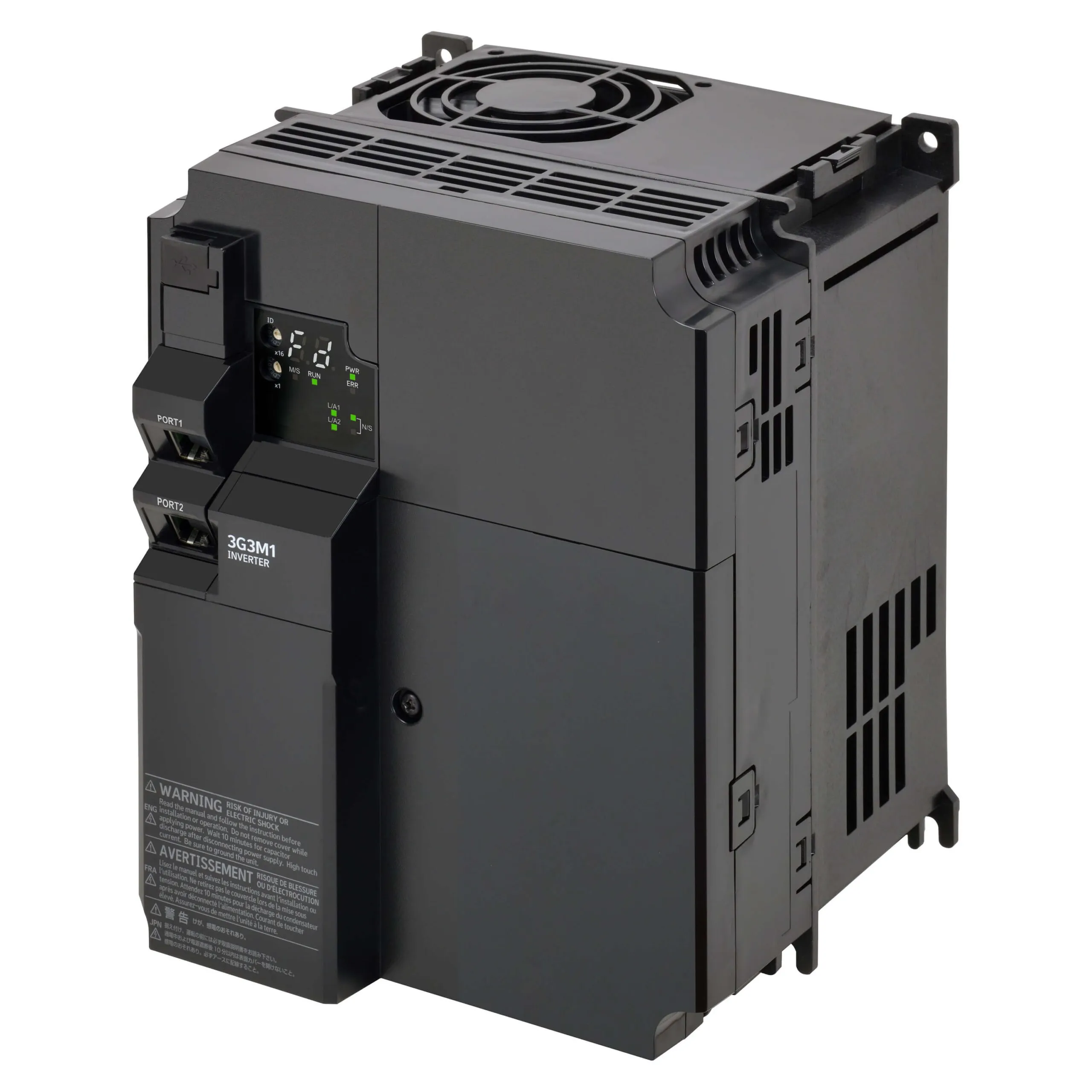 M1 AC Drive, 5.5/7.5 kW (HD/ND), 14.8/17.5 A (HD/ND), 400 VAC, 3~ input, OLV/CLV control, Ethernet Multi-Protocol (EtherNet/IP, PROFINET and Modbus TCP), max. output freq. 590 Hz