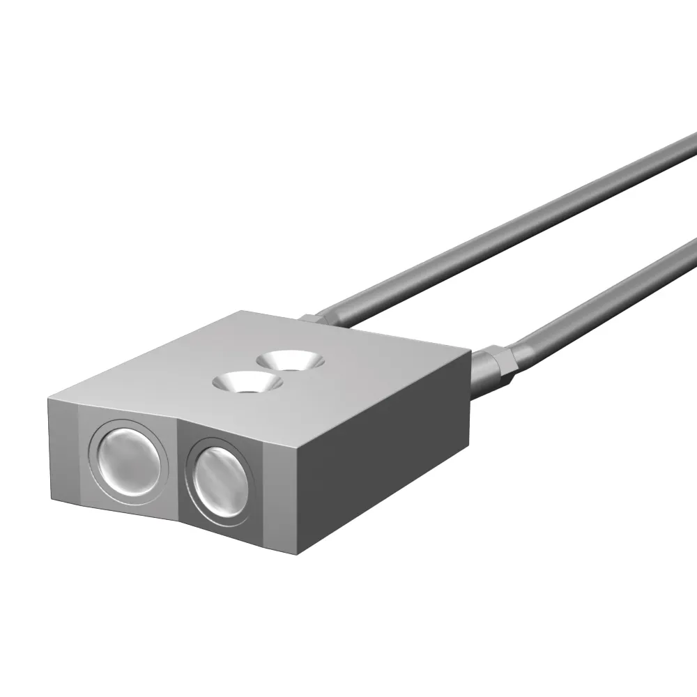 Fiber optic sensor head, limited reflective, transparent object detection, square, top-view, R25 heat resistant fiber, up to 300ºC, 2 m cable