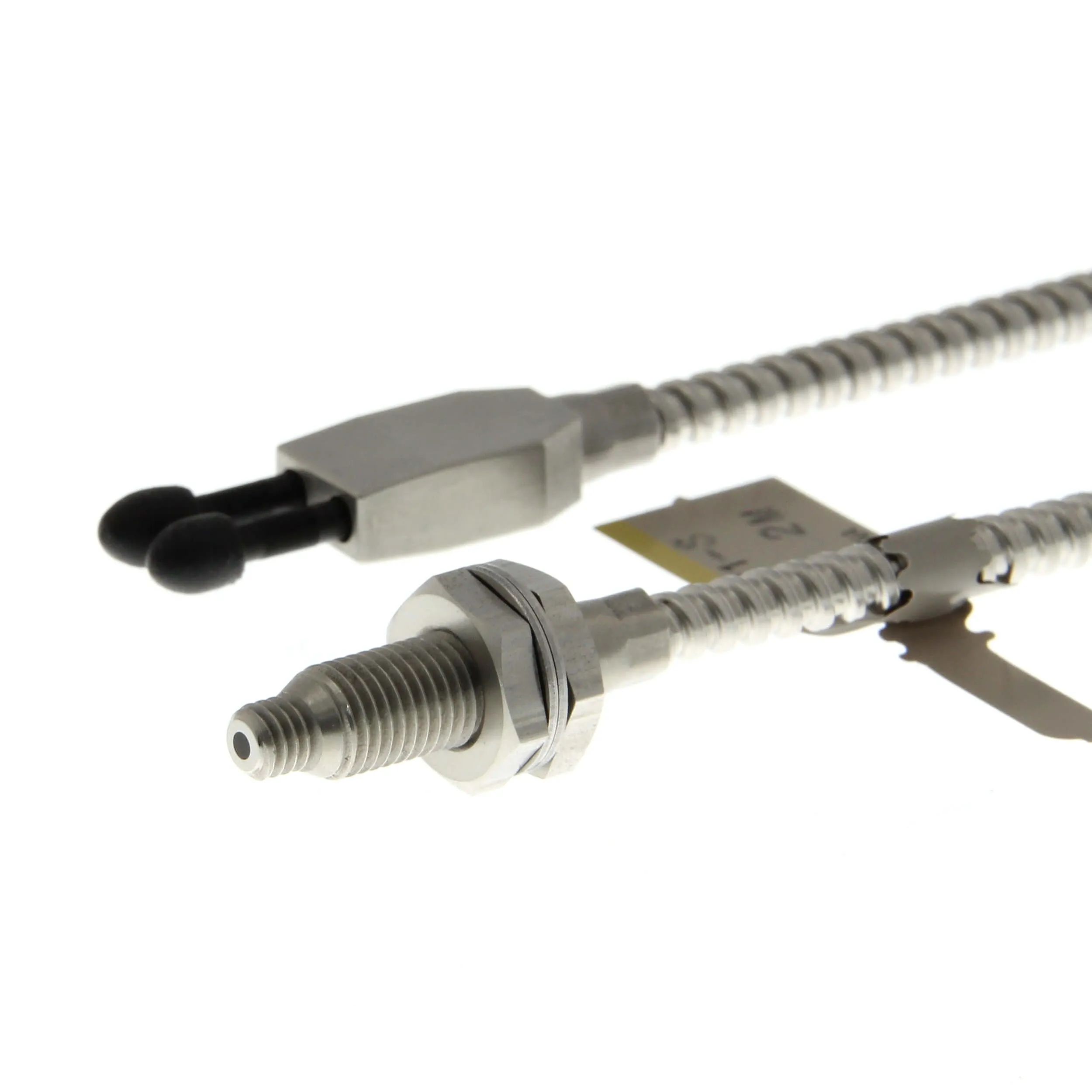 Fiber optic sensor head, diffuse, M6 cylindrical axial, R25 heat resistant fiber, up to 350ºC, 2 m cable