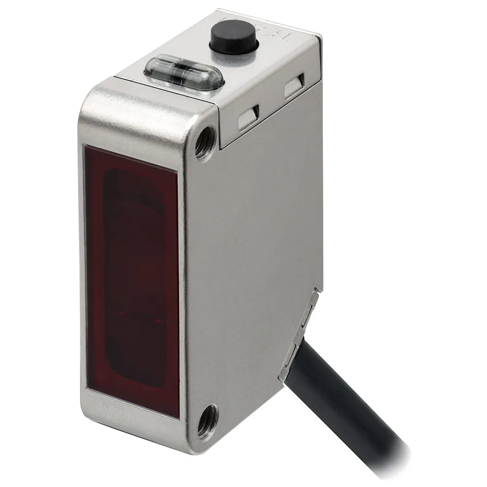 Photoelectric sensor, rectangular housing, stainless steel, red LED, retro-reflective, transparent object, 500 mm, with teach-button, NPN, Light-ON/Dark-ON, 5 m cable