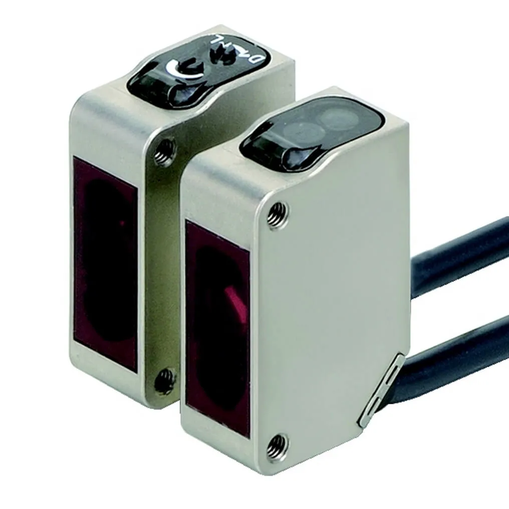 Photoelectric sensor, rectangular housing, stainless steel, infrared LED, through-beam, 800 mm, PNP, Light-ON/Dark-ON, 2 m cable
