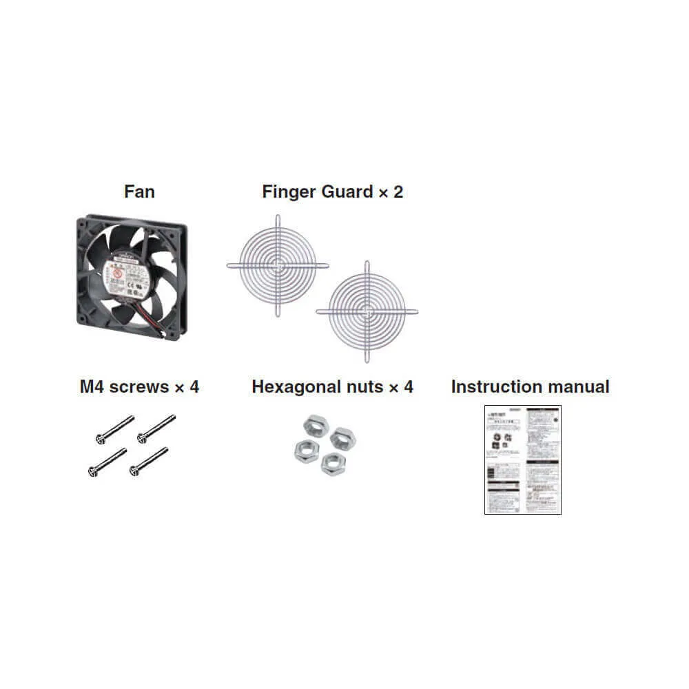 DC Axial fan, plastic blade, frame 92×25, low speed, 2 x finger guard, 4 x M4 x 40 mm screws, 4 x M4 nuts