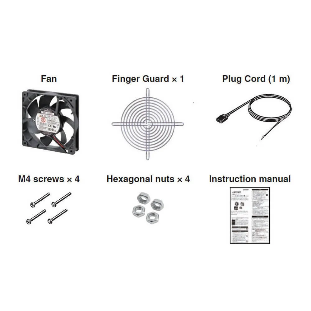 1 x Finger guard, Fan, M4 x 55 mm Screws, Nuts, Plug cord (1 m)