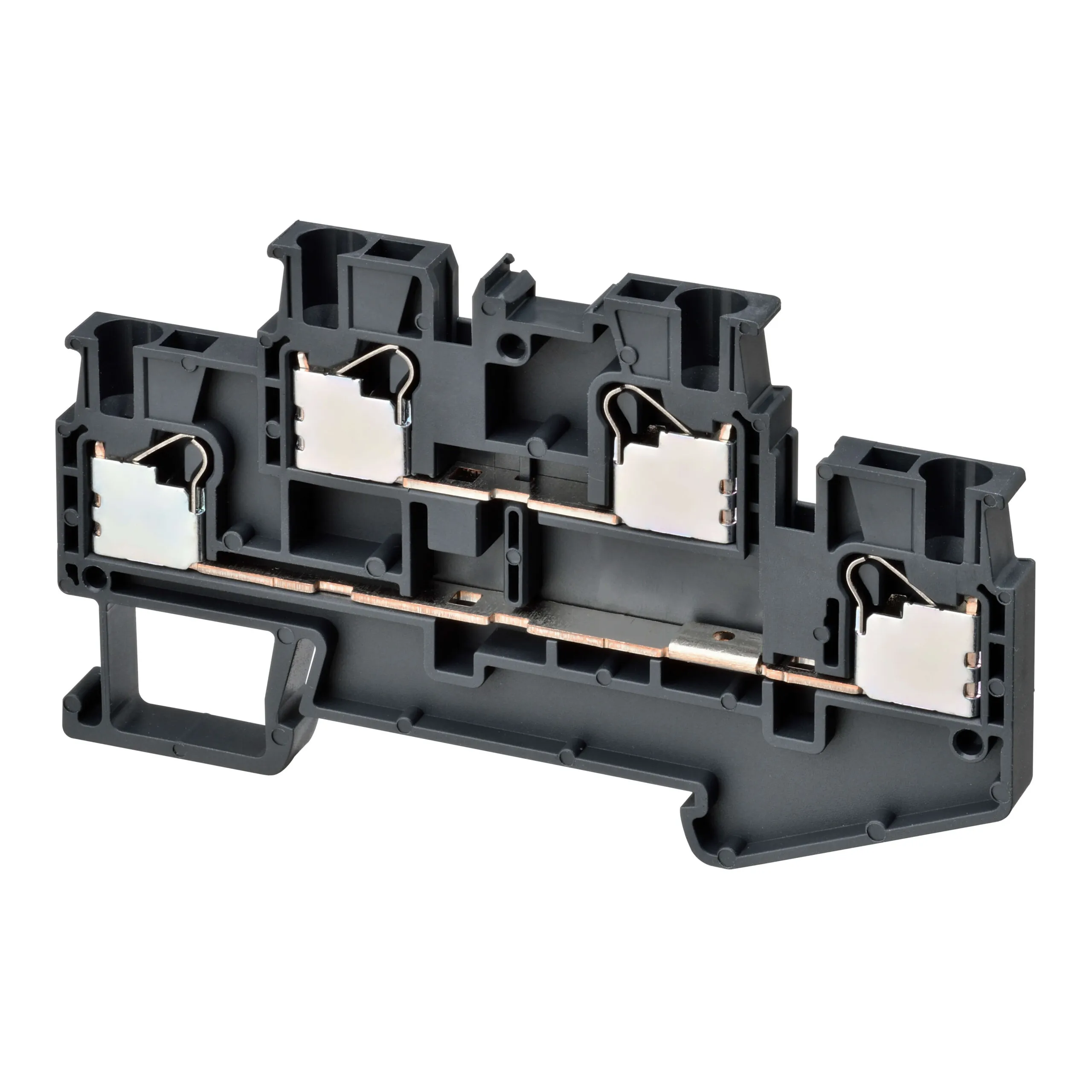 Multi-tier feed-through DIN rail terminal block with push-in plus connection for mounting on TS 35, nominal cross section 2.5 mm², color gray