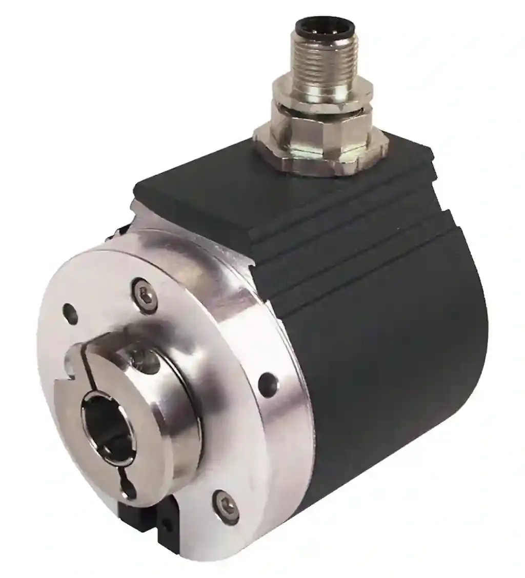 Singleturn absolute rotary encoder. Industrial standard housing ∅58 mm, 13 Bit singleturn, Output code: gray and binary, Transfer of position data with 4 AS-Interface slaves, Parameterization and addressing via AS-Interface, Enclosure type: 58 mm, Type of shaft: Recessed hollow shaft, Interface: AS-Interface, Detection type: photoelectric sampling, Interface type: AS-Interface. Detection type: photoelectric sampling. Device type: Singleturn absolute rotary encoder. Operating voltage: 29.5 … 31.6 V DC. No-load supply current: max. starting current 155 mA , operating current max. 85 mA. Linearity: ± 1 LSB. Output code: programmable, Gray code, binary code. Code course (counting direction): programmable,cw ascending (clockwise rotation, code course ascending)cw descending (clockwise rotation, code course descending). Interface type: AS-Interface. Resolution: . Single turn13 BitOverall resolution13 Bit: . Single turn: 13 Bit. Overall resolution: 13 Bit. Transfer rate: max. 0.167 MBit/s. Standard conformity: AS-Interface. Connector: type V1, M12, 4-pin. Degree of protection: DIN EN 60529, IP65. Climatic testing: DIN EN 60068-2-3, no moisture condensation. Emitted interference: EN 61000-6-4:2007. Noise immunity: EN 61000-6-2:2005. Shock resistance: DIN EN 60068-2-27, 100 g, 11 ms. Vibration resistance: DIN EN 60068-2-6, 10 g, 10 … 2000 Hz. Operating temperature: -20 … 70 °C (-4 … 158 °F). Storage temperature: -25 … 85 °C (-13 … 185 °F). Material: housing: powder coated aluminumflange: aluminumshaft: stainless steel. Mass: approx. 330 g. Rotational speed: max. 10000 min -1. Moment of inertia: 30 gcm2. Starting torque: ≤ 2 Ncm. Tightening torque, fastening screws: max. 1.8 Nm. Shaft load: . Angle offset1 °Axial offsetmax. 1 mm: . Angle offset: 1 °. Axial offset: max. 1 mm. Dimensions: . Length68 mmDiameter58 mm: . Length: 68 mm. Diameter: 58 mm