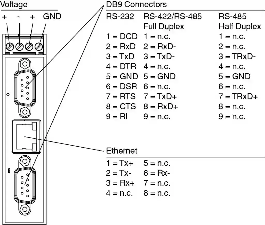 | Connection | Power Supply: screw terminals Fieldbus: 1 x RJ45 Inputs/outputs: 2 x DB9 |