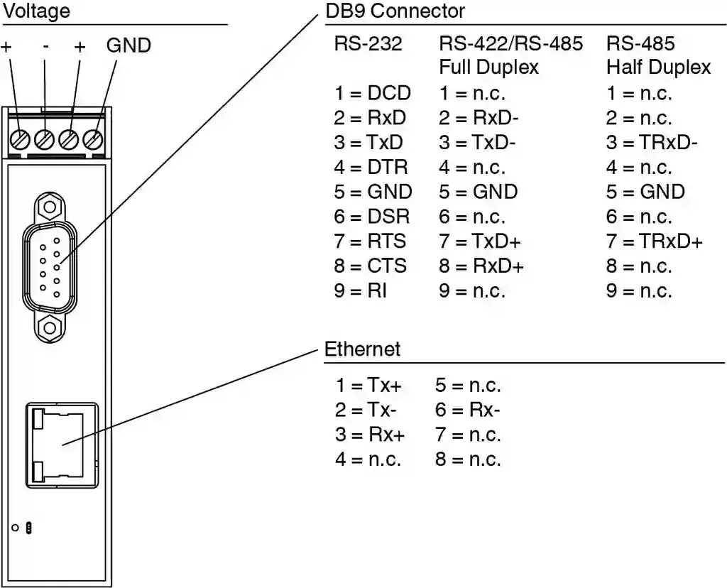 | Connection | Power Supply: screw terminals Fieldbus: 1 x RJ45 Inputs/outputs: 1 x DB9 |