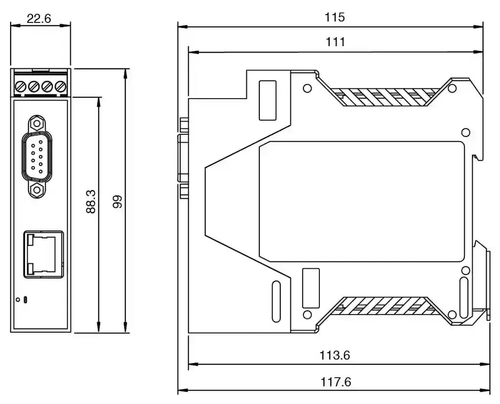 | Mounting | DIN mounting rail |