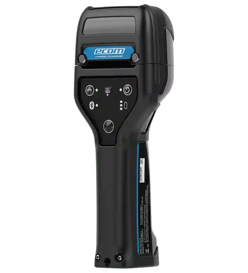 Intrinsically safe Bluetooth® handheld. Ident-Ex® 01, part no. 70107999, Zone 1/21 and Div. 1, with barcode reader module. Description: 1-D barcode scanner , RFID reader. Readable codes: 1-D barcode. Scanner: Scan performance*:RFID = up to 1.5 mBarcode = 3 cm to 5 m* The reading range depends on the RFID tag type, barcode type and the environment.. Internal data memory: Offline batch mode2 MBytes;Barcodes = 500+;RFID* tags (ID only) = 500+. Battery type: Li-Ion battery Rechargeable 10.000+ scans with one battery charge. Operating duration: approx. 12 h. Bluetooth: Class II, up to approx. 10 meters. Applications: eSETUP Ident-Ex® , eSETTINGS Ident-Ex® (API DEMO). Degree of protection: IP64 EN IEC 60079-0 (ATEX/ IECEx). Mass: 431 g. Dimensions: 221 mm x 84 mm x 58 mm. ATEX approval: . ATEX marking II 2D Ex ib IIIC T135°C Db IP6X [exsign] II 2G Ex ib IIC T4 Gb IP64: . ATEX marking: II 2D Ex ib IIIC T135°C Db IP6X [exsign] II 2G Ex ib IIC T4 Gb IP64. SGS approval: . SGS markingClass I, II, III, Division 1 Groups A-G, T4, T 135°C Cl I Zn 1, AEx ia IIC T4 Gb IP64: . SGS marking: Class I, II, III, Division 1 Groups A-G, T4, T 135°C Cl I Zn 1, AEx ia IIC T4 Gb IP64. IECEx approval: . IECEx markingEx ib IIC T4 Gb IP64 Ex ib IIIC T135°C Db IP 6X: . IECEx marking: Ex ib IIC T4 Gb IP64 Ex ib IIIC T135°C Db IP 6X. Note: For more information, visit ecom-ex.com.. Scope of delivery: Ident-Ex® Head module Charging cable Charger Documentation