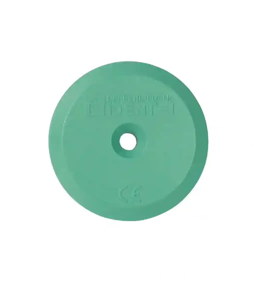 RFID Transponder. Data carrier. Operating frequency: 13.56 MHz. Transfer rate: 26 kBit/s. Chip Type: I-CODE SLI (NXP). EEPROM: 896 Bit. UID: 64 Bit. Memory organization: 4 bytes/block. Read cycles: unlimited. Write cycles: > 100000. Data retention period: 10 years at 55 °C (131 °F). Radio equipment: . Directive 2014/53/EUEN 300330: . Directive 2014/53/EU: EN 300330. RoHS: . Directive 2011/65/EU (RoHS)IEC/EN 63000: . Directive 2011/65/EU (RoHS): IEC/EN 63000. Degree of protection: EN 60529. RFID: ISO/IEC 15693-1 ISO/IEC 15693-2 ISO/IEC 15693-3 ISO/IEC 18000-3. Ambient temperature: -25 … 85 °C (-13 … 185 °F). Storage temperature: -25 … 85 °C (-13 … 185 °F). Degree of protection: IP67. Material: . HousingABSEncapsulation compoundPolyurethane (PUR): . Housing: ABS. Encapsulation compound: Polyurethane (PUR). Installation: . On metalyesIn airyes: . On metal: yes. In air: yes. Dimensions: . Height20.1 mmDiameter58 mm: . Height: 20.1 mm. Diameter: 58 mm. Construction type: Cylindrical