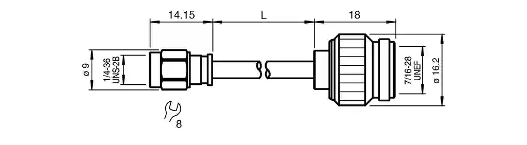 | Construction typeSMA connector 1/4-36 UNS-2BStylestraightLockingscrew connection | |