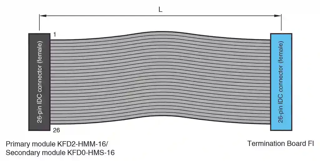 HART Connection Cable with Connectors. K-System accessory, Connection cable for KF*-HM*-16 to Termination Board, 26-pin ribbon cable