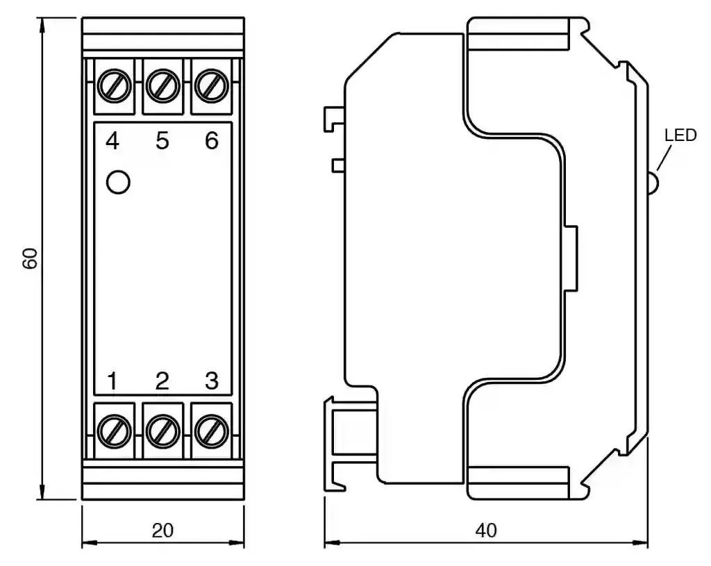 Sensor output interface terminal. 1-channel terminal amplifier, NAMUR sensor input, DC 24 V supply voltage, Standard interface for prevention of signal transmission errors, Switching status indicator, yellow LED, Operating voltage: 10 … 30 V DC, Connectable sensor types: NAMUR, Transistor: PNP. MTTFd: 916 a. LED yellow: switch output. Operating voltage: 10 … 30 V DC. Ripple: ≤ 10 %. Operating current: approx. 22 mA. Connection: terminals 1+, 2-. Connectable sensor types: NAMUR. Pulse length/pulse interval: ≥ 0.5 ms / ≥ 0.5 ms. Short-circuit current: approx. 8 mA. Sensor supply: 8 V DC. Switching point: 1.2 … 2.1 mA hysteresis approx. 0.2 mA. Line fault detection: without. Trip value: 1 kHz. Connection: terminal 4+. Current: 200 mA short-circuit protected. Transistor: PNP. Signal level: UB – 1.1V. Mode of operation: NC contact. Switching frequency: 1 kHz. Electromagnetic compatibility: . Directive 2014/30/EUEN 61326-1:2013: . Directive 2014/30/EU: EN 61326-1:2013. Degree of protection: EN 60529:2000. Noise immunity: EN 61326-1:2013. Ambient temperature: -25 … 70 °C (-13 … 158 °F). Storage temperature: -25 … 85 °C (-13 … 185 °F). Connection: self-opening apparatus connection terminals, max. core cross-section 0.34 … 2.5 mm2. Mass: 60 g. Dimensions: 20x60x40(in mm)