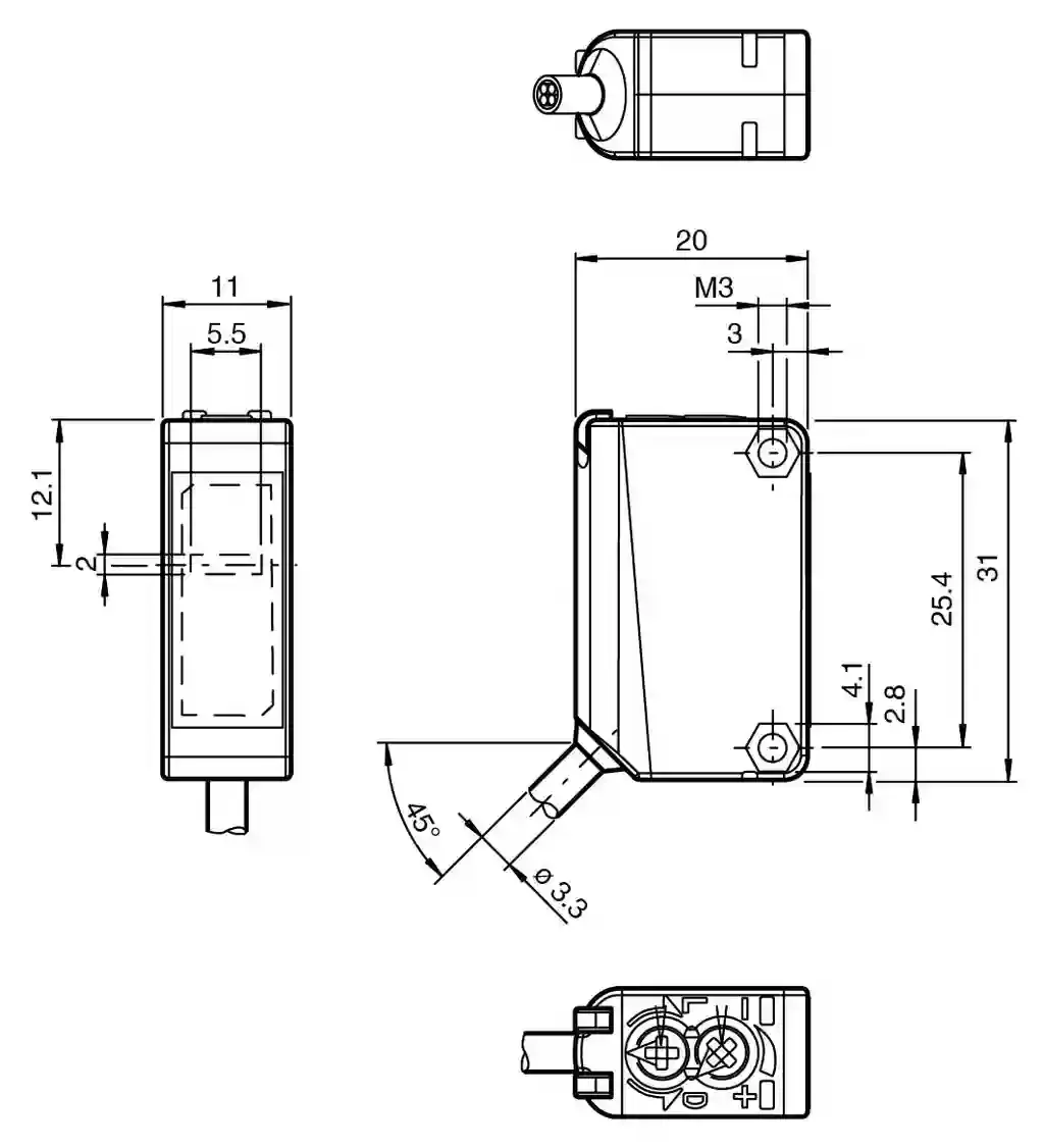 | Switching type | The switching type of the sensor is adjustable. The default setting is: light-on |