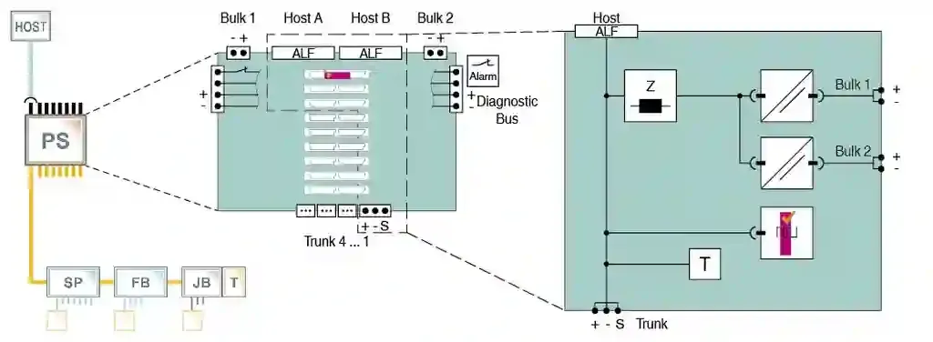 Power Hub Motherboard. Power hub motherboard for Yokogawa ALF111, 4 segments, redundant, individual modules per segment, Customized for Yokogawa, ALF 111, High-power trunk: Live work on devices in any hazardous area, Best quality, smallest size and lowest heat dissipation, For FOUNDATION Fieldbus H1, IECEx approval, International, Europe, USA, Canada, Device coupler location: non-explosion hazardous areaZone 2 – high-power trunkZone 1 – high-power trunkDivision 2 – high-power trunkDivision 1 – high-power trunk