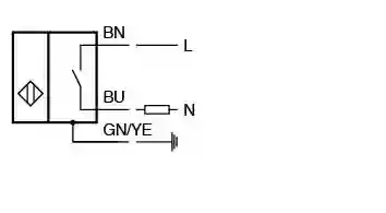 Inductive sensor. Switching function: Normally open (NO), Output type: Two-wire, Installation: quasi flush, Output polarity: AC, Output type: 2-wire, Thread mold: M30, Construction type: Cylindrical, thread, Series: Cylindrical type, Type of voltage: AC, Connection type: cable, Housing material: brass, nickel-plated, Degree of protection: IP67, Material: PVC. Switching function: Normally open (NO). Output type: Two-wire. Rated operating distance: 15 mm. Installation: quasi flush. Output polarity: AC. Assured operating distance: 0 … 12.15 mm. Actual operating distance: 13.5 … 16.5 mm. Reduction factor rAl: 0.33. Reduction factor rCu: 0.28. Reduction factor r304: 0.81. Output type: 2-wire. Operating voltage: 20 … 253 V. Switching frequency: 0 … 20 Hz. Hysteresis: 1 … 10 % typ. 5 %. Reverse polarity protection: reverse polarity tolerant. Voltage drop: 50 mA); < 8 V (IL 10 x cable diameterMaterialPVCColorgreyNumber of cores3Core cross section0.75 mm2LengthL2 m: . Wire end ferrules: yes. Cable diameter: 6.4 mm ± 0.2 mm. Bending radius: > 10 x cable diameter. Material: PVC. Color: grey. Number of cores: 3. Core cross section: 0.75 mm2. Length: 2 m. Dimensions: . Length50 mmDiameter30 mm: . Length: 50 mm. Diameter: 30 mm. Note: 1) In the temperature range below 0 °C, permissible operating voltage Ub 80…253 V Safety fuse ≤ 0.3 A (quick-blow) according to IEC 60127-2 Sheet 1 Recommendation: after a short circuit, check that the device is functioning correctly.