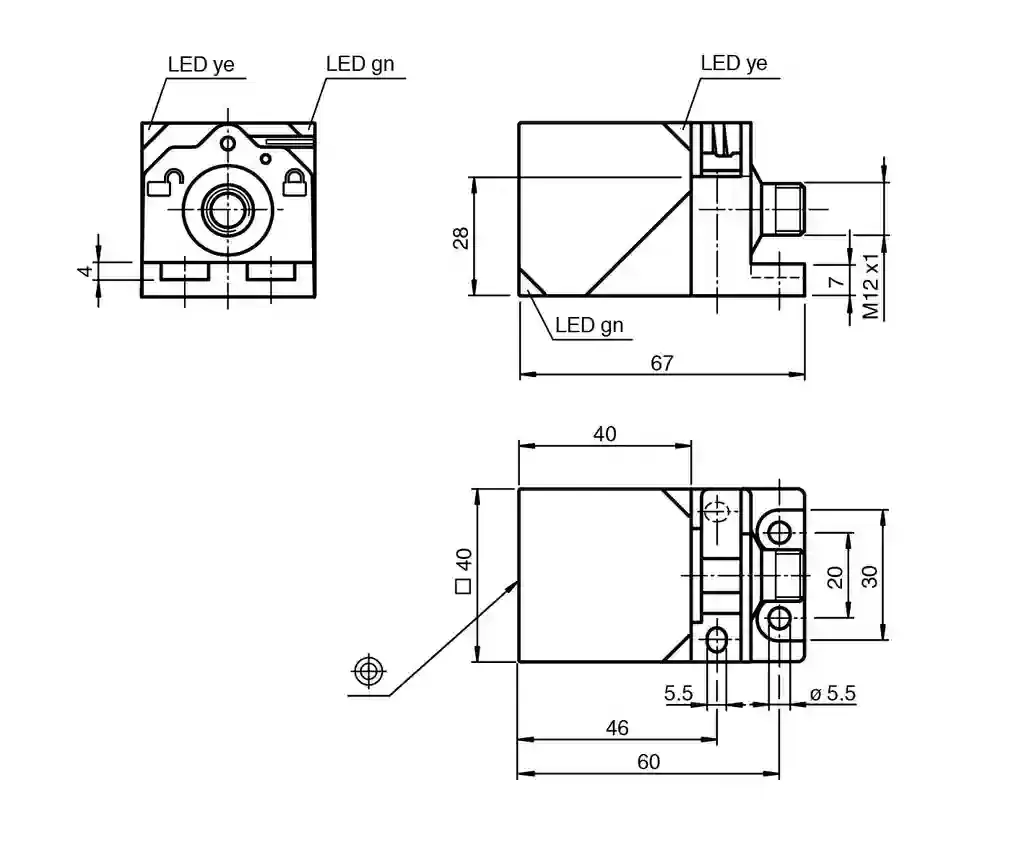 Inductive sensor. Switching function: Normally open (NO), Output type: NPN, Installation: flush, Output polarity: DC, Output type: 3-wire, Construction type: VariKont L ®, Series: VariKont L ®, Operating voltage: 10 … 30 V DC, Type of voltage: DC, Connection type: Connector plug, Housing material: PA, Degree of protection: IP68 / IP69K, Threading: M12 x 1. Switching function: Normally open (NO). Output type: NPN. Rated operating distance: 20 mm. Installation: flush. Output polarity: DC. Assured operating distance: 0 … 16.2 mm. Actual operating distance: 18 … 22 mm. Reduction factor rAl: 0.33. Reduction factor rCu: 0.31. Reduction factor r304: 0.74. Reduction factor rBrass: 0.41. Output type: 3-wire. Operating voltage: 10 … 30 V DC. Switching frequency: 0 … 440 Hz. Hysteresis: typ. 5 %. Reverse polarity protection: reverse polarity protected. Short-circuit protection: pulsing. Voltage drop: ≤ 2 V. Operating current: 0 … 200 mA. Off-state current: 0 … 0.5 mA. No-load supply current: ≤ 20 mA. Time delay before availability: 80 ms. Operating voltage indicator: LED, green. Switching state indicator: LED, yellow. MTTFd: 1510 a. Mission Time (TM): 20 a. Diagnostic Coverage (DC): 0 %. Standard conformity: . StandardsEN IEC 60947-5-2: . Standards: EN IEC 60947-5-2. Protection class: II. Rated insulation voltageUi253 VRated impulse withstand voltageUimp4000 V: Ui. Rated insulation voltage: 253 V. Rated impulse withstand voltage: 4000 V. UL approval: cULus Listed Load Type: General Purpose Circuitry: Class 2 Power Source Enclosure Type Rating: Type 1 Supply/Switching Voltage: 30 V DC Output Switching Current: 200 mA. CCC approval: CCC approval / marking not required for products rated ≤36 V. Ambient temperature: -25 … 85 °C (-13 … 185 °F). Storage temperature: -40 … 85 °C (-40 … 185 °F). Connection type: Connector plug. Housing material: PA. Sensing face: PA. Degree of protection: IP68 / IP69K. Connector: . ThreadingM12 x 1Number of pins4: . Threading: M12 x 1. Number of pins: 4. Mass: 155 g. Dimensions: . Height40 mmWidth40 mmLength67 mm: . Height: 40 mm. Width: 40 mm. Length: 67 mm