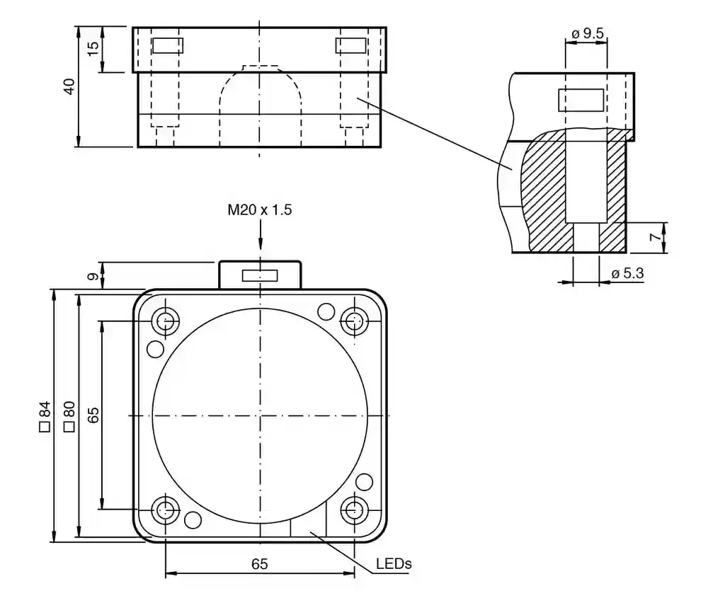 Inductive sensor. Switching function: Normally open (NO), Output type: PNP, Installation: flush, Output polarity: DC, Output type: 3-wire, Construction type: Rectangular, Series: Rectangular type, Operating voltage: 10 … 60 V DC, Type of voltage: DC, Connection type: screw terminals, Housing material: PBT, Degree of protection: IP68. Switching function: Normally open (NO). Output type: PNP. Rated operating distance: 50 mm. Installation: flush. Output polarity: DC. Assured operating distance: 0 … 40.5 mm. Reduction factor rAl: 0.38. Reduction factor rCu: 0.35. Reduction factor r304: 0.83. Output type: 3-wire. Operating voltage: 10 … 60 V DC. Switching frequency: 0 … 80 Hz. Hysteresis: typ. 3 %. Reverse polarity protection: reverse polarity protected. Short-circuit protection: pulsing. Voltage drop: ≤ 3 V. Operating current: 0 … 200 mA. Off-state current: 0 … 0.5 mA. No-load supply current: ≤ 20 mA. Time delay before availability: ≤ 300 ms. Operating voltage indicator: LED, green. Switching state indicator: LED, yellow. MTTFd: 940 a. Mission Time (TM): 20 a. Diagnostic Coverage (DC): 0 %. Standard conformity: . StandardsEN IEC 60947-5-2: . Standards: EN IEC 60947-5-2. UL approval: cULus Listed Load Type: General Purpose Circuitry: Class 2 Power Source Enclosure Type Rating: Type 1 Supply/Switching Voltage: 60 V DC Output Switching Current: 200 mA. CCC approval: Certified by China Compulsory Certification (CCC). Ambient temperature: -25 … 70 °C (-13 … 158 °F). Connection type: screw terminals. Information for connection: A maximum of two conductors with the same core cross section may be mounted on one terminal connection! tightening torque 1.2 Nm + 10 %. Core cross section: up to 2.5 mm2. Minimum core cross-sectionwithout wire end ferrules 0.5 mm2 , with connector sleeves 0.34 mm2Maximum core cross-sectionwithout wire end ferrules 2.5 mm2 , with connector sleeves 1.5 mm2: . Minimum core cross-section: without wire end ferrules 0.5 mm2 , with connector sleeves 0.34 mm2. Maximum core cross-section: without wire end ferrules 2.5 mm2 , with connector sleeves 1.5 mm2. Housing material: PBT. Sensing face: PBT. Housing base: PBT. Degree of protection: IP68. Dimensions: . Height40 mmWidth84 mmLength84 mm: . Height: 40 mm. Width: 84 mm. Length: 84 mm