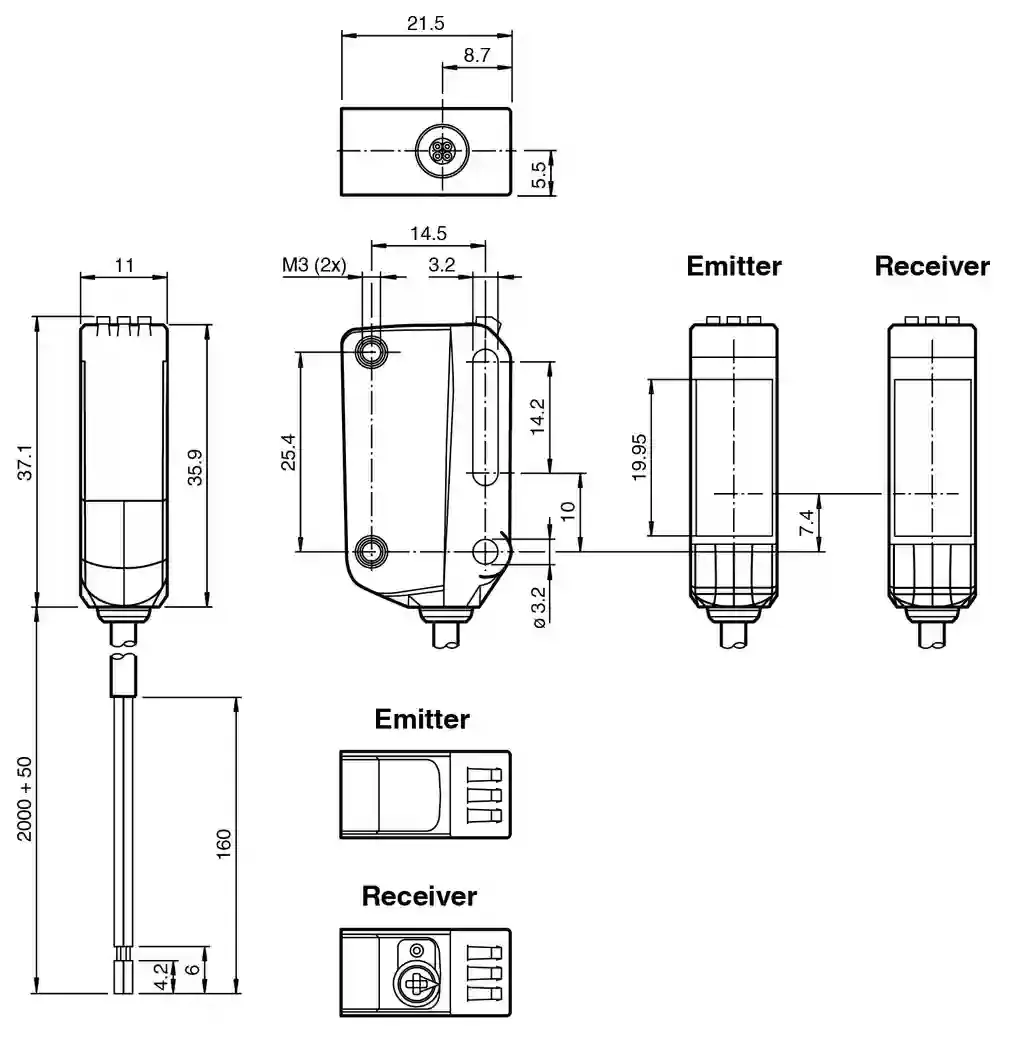Thru-beam sensor (pair). Miniature design with versatile mounting options, IO-Link interface for service and process data, Various frequencies for avoiding mutual interference (cross-talk immunity), E…