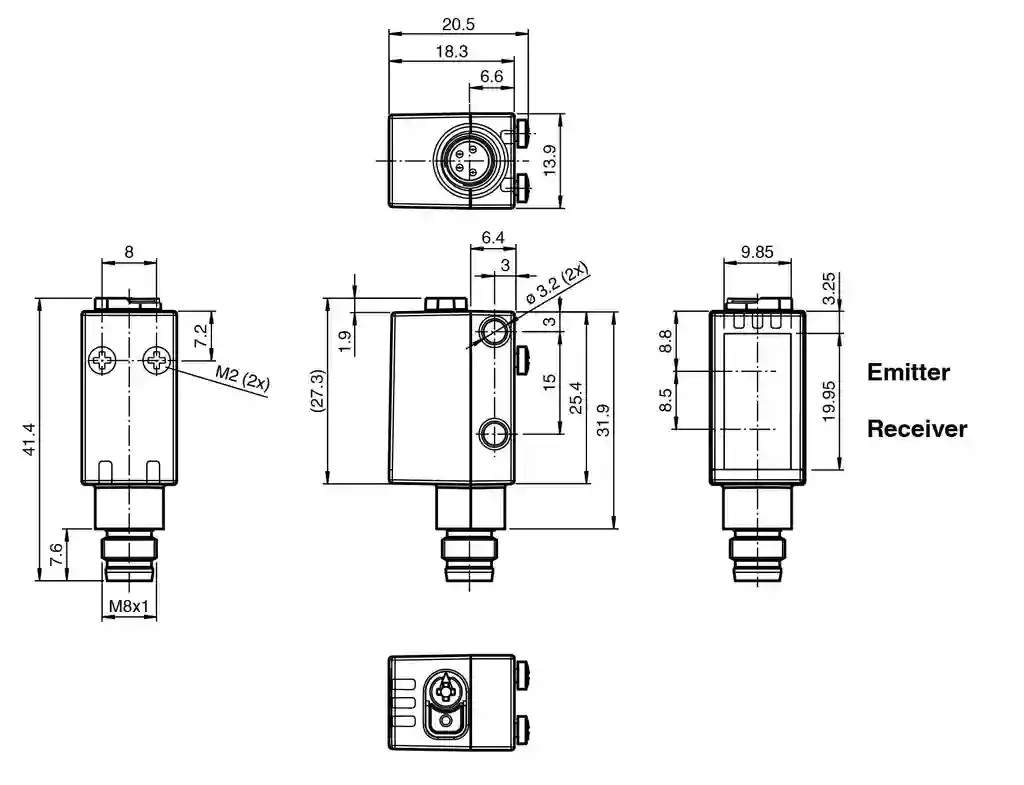 | Height41.4 mmWidth13.9 mmDepth18.3 mm | |
