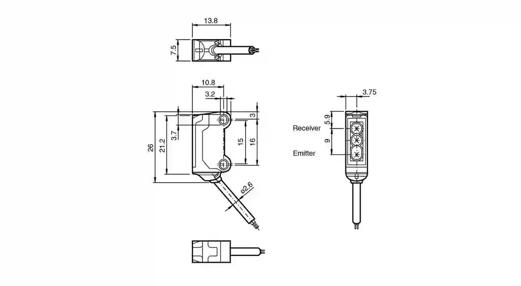 Height26 mmWidth7.5 mmDepth13.8 mm