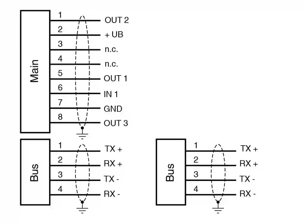 | Connection type | 8-pin, M12x1 connector, standard (supply+IO) 4-pin, M12x1 socket, D-coded (LAN) 4-pin, M12x1 socket, D-coded (LAN) |