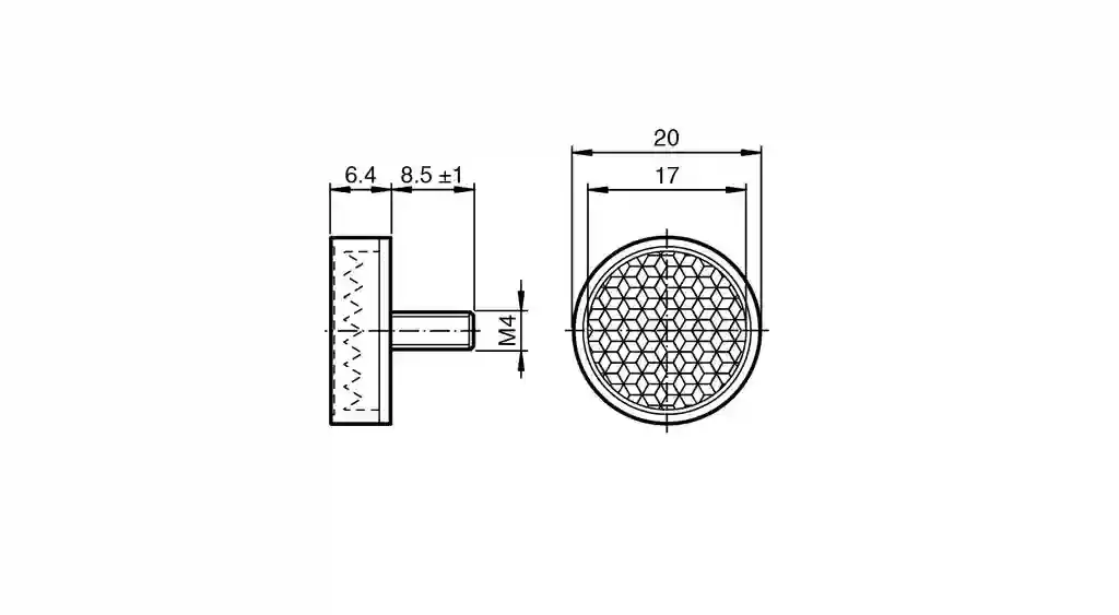 Reflector. Reflector, round ø 20 mm, screw fixing M4. Construction type: circular. Ambient temperature: -30 … 65 °C (-22 … 149 °F). Degree of protection: IP68. Material: PET. Dimensions: Diameter: 20 mm. Diameter20 mm: . Diameter: 20 mm. Mounting: screw fixing