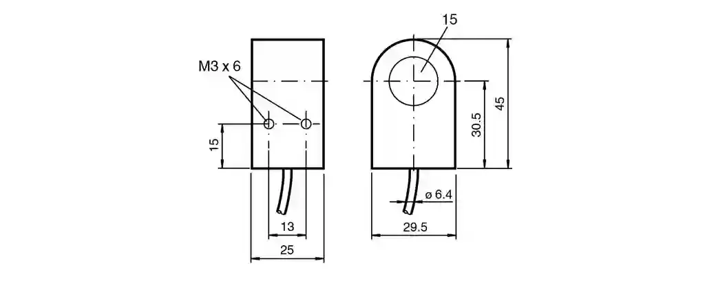 Inductive ring sensor. Switching function: Normally closed (NC), Output type: NAMUR, Output type: 2-wire, Construction type: Ring, Series: Ring Type, Type of voltage: DC, Equipment protection level Gb: PTB 99 ATEX 2128 X, Connection type: cable, Housing material: PBT, Degree of protection: IP67, Material: PVC. Switching function: Normally closed (NC). Output type: NAMUR. Inside diameter: 15 mm. Measuring cylinder: . Diameter3 mmLength4 mm: . Diameter: 3 mm. Length: 4 mm. Output type: 2-wire. Nominal voltage: 8.2 V (Ri approx. 1 kΩ). Operating voltage: 5 … 25 V. Switching frequency: 0 … 1500 Hz. Current consumption: . Measuring plate not detected≥ 3 mA at nominal voltageMeasuring plate detected≤ 1 mA at nominal voltage: . Measuring plate not detected: ≥ 3 mA at nominal voltage. Measuring plate detected: ≤ 1 mA at nominal voltage. MTTFd: 9340 a. Mission Time (TM): 20 a. Diagnostic Coverage (DC): 0 %. Standard conformity: . NAMUREN 60947-5-6:2000 IEC 60947-5-6:1999StandardsEN IEC 60947-5-2: . NAMUR: EN 60947-5-6:2000 IEC 60947-5-6:1999. Standards: EN IEC 60947-5-2. ATEX approval: . Equipment protection level GbPTB 99 ATEX 2128 X: . Equipment protection level Gb: PTB 99 ATEX 2128 X. FM approval: . Control drawing116-0165: . Control drawing: 116-0165. UL approval: cULus Listed Load Type: General Purpose Circuitry: Class 2 Power Source Enclosure Type Rating: Type 1 Supply/Switching Voltage: 8.2 V DC. Ambient temperature: -25 … 70 °C (-13 … 158 °F). Connection type: cable. Housing material: PBT. Degree of protection: IP67. Cable: . Cable diameter4.8 mm ± 0.2 mmBending radius> 10 x cable diameterMaterialPVCCore cross section0.34 mm2LengthL2 m: . Cable diameter: 4.8 mm ± 0.2 mm. Bending radius: > 10 x cable diameter. Material: PVC. Core cross section: 0.34 mm2. Length: 2 m. Dimensions: . Height45 mmWidth29 mmLength25 mm: . Height: 45 mm. Width: 29 mm. Length: 25 mm. Use in the hazardous area: see instruction manuals