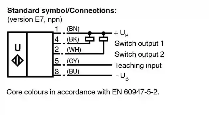 | Output type | 2 switch outputs NPN, normally open/closed , programmable |