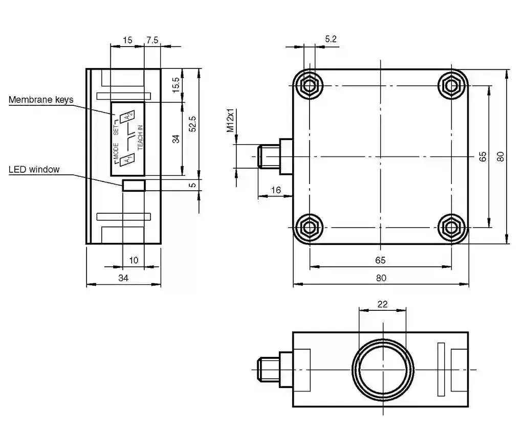 Ultrasonic sensor. Single head system, 2 independent switch outputs, Extremely small unusable area, TEACH-IN, Series: UB-F42, Operating voltage: 10 … 30 V DC , ripple 10 %SS, Output type: 2 switch outputs PNP, NO/NC selectable, UL approval: cULus Listed, Class 2 Power Source, CCC approval: CCC approval / marking not required for products rated ≤36 V, Connection type: Connector plug M12 x 1 , 5-pin, Housing: ABS. Sensing range: 60 … 2000 mm. Adjustment range: 90 … 2000 mm. Dead band: 0 … 60 mm. Standard target plate: 100 mm x 100 mm. Transducer frequency: approx. 175 kHz. Response delay: approx. 150 ms. LED green: solid green: Power on. LED yellow 1: solid: switching state switch output 1flashing: program function. LED yellow 2: solid: switching state switch output 2flashing: program function. LED red: normal operation: “fault”program function: no object detected. Operating voltage: 10 … 30 V DC , ripple 10 %SS. No-load supply current: ≤ 50 mA. Synchronization: bi-directional0 level -UB…+1 V1 level: +4 V…+UB input impedance: > 12 KOhmsynchronization pulse: ≥ 100 µs, synchronization interpulse period: ≥ 2 ms. Synchronization frequency: . Common mode operationmax. 30 HzMultiplex operation≤ 30/n Hz, n = number of sensors: . Common mode operation: max. 30 Hz. Multiplex operation: ≤ 30/n Hz, n = number of sensors. Output type: 2 switch outputs PNP, NO/NC selectable. Rated operating current: 200 mA , short-circuit/overload protected. Default setting: Switch point A1: 90 mm , Switch point A2: 2000 mm , wide sound lobe. Voltage drop: ≤ 2.5 V. Repeat accuracy: ≤ 0.5 % of switching point. Switching frequency: ≤ 2.7 Hz. Range hysteresis: 1 % of the set operating distance. Temperature influence: ± 1 % of full-scale value. Standard conformity: . StandardsEN IEC 60947-5-2:2020 IEC 60947-5-2:2019: . Standards: EN IEC 60947-5-2:2020 IEC 60947-5-2:2019. UL approval: cULus Listed, Class 2 Power Source. CCC approval: CCC approval / marking not required for products rated ≤36 V. Ambient temperature: -25 … 70 °C (-13 … 158 °F). Storage temperature: -40 … 85 °C (-40 … 185 °F). Connection type: Connector plug M12 x 1 , 5-pin. Degree of protection: IP54. Material: . HousingABSTransducerepoxy resin/hollow glass sphere mixture; foam polyurethane, cover PBT: . Housing: ABS. Transducer: epoxy resin/hollow glass sphere mixture; foam polyurethane, cover PBT. Mass: 140 g. Dimensions: . Height80 mmWidth34 mmLength80 mm: . Height: 80 mm. Width: 34 mm. Length: 80 mm