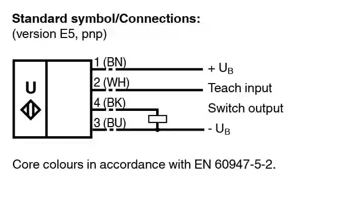 | Output type | 1 switching output E5, PNP NO/NC, programmable |