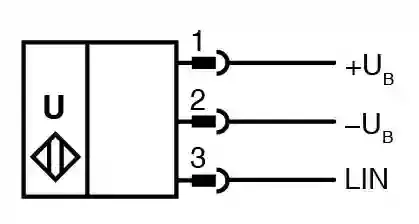 Ultrasonic sensor. Single head system, Physical LIN interface, Temperature compensation, M30 plastic housing, Series: ultrasonic module, Operating voltage: 8 … 18 V DC , ripple 10 %SS, Interface type: Physical LIN interface, UL approval: UL Recognized , General purpose , Class 2 power source, CCC approval: CCC approval / marking not required for products rated ≤36 V, Connection type: cable, Housing: plastic , PBT. Sensing range: 150 … 2500 mm. Dead band: 0 … 150 mm. Standard target plate: 100 mm x 100 mm. Transducer frequency: approx. 120 kHz. Operating voltage: 8 … 18 V DC , ripple 10 %SS. No-load supply current: ≤ 20 mA at 12 V DC. Power consumption: ≤ 250 mW in the measurement operating mode. Time delay before availability: ≤ 70 ms. Interface type: Physical LIN interface. Transfer rate: 19.2 kBit/s (8N1). Cycle time: 55 ms. Resolution: 10 mm (corresponding to 1 LSB). Repeat accuracy: 10 mm (corresponding to 1 LSB). Temperature influence: 3 % of full-scale value over the entire temperature range. Electromagnetic compatibility: . Directive 2014/30/EUEN IEC 60947-5-2:2020 : chapter 8.2.6.2.2, 8.2.6.2.3, 8.2.6.3 The sensor is designed to be supplied by a battery. The sensor signals are further processed in a control unit, which is also responsible for EMC protection.: . Directive 2014/30/EU: EN IEC 60947-5-2:2020 : chapter 8.2.6.2.2, 8.2.6.2.3, 8.2.6.3 The sensor is designed to be supplied by a battery. The sensor signals are further processed in a control unit, which is also responsible for EMC protection.. UL approval: UL Recognized , General purpose , Class 2 power source. CCC approval: CCC approval / marking not required for products rated ≤36 V. Ambient temperature: -25 … 70 °C (-13 … 158 °F). Storage temperature: -40 … 85 °C (-40 … 185 °F). Connection type: cable. Degree of protection: IP65. Material: . Housingplastic , PBTTransducerepoxy resin/hollow glass sphere mixture; polyurethane foam: . Housing: plastic , PBT. Transducer: epoxy resin/hollow glass sphere mixture; polyurethane foam. Cable: . Cable diameter3 mmMaterialPURCore cross section0.34 mm2LengthL1 m: . Cable diameter: 3 mm. Material: PUR. Core cross section: 0.34 mm2. Length: 1 m. Mass: 65 g. Dimensions: . Diameter30 mm: . Diameter: 30 mm. Default setting: Temperature compensation Address setting 7. Synchronization: Firmware. Scope of delivery: 2 nuts plastic