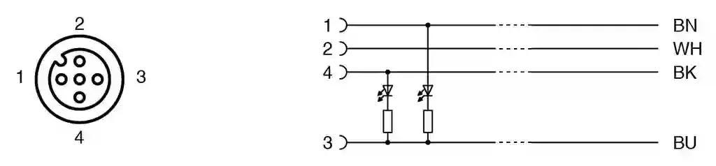 Female cordset. Female cordset single-ended M12 straight A-coded, LED 4-pin, PUR cable black, UL approved, drag chain suitable, torsion resistant