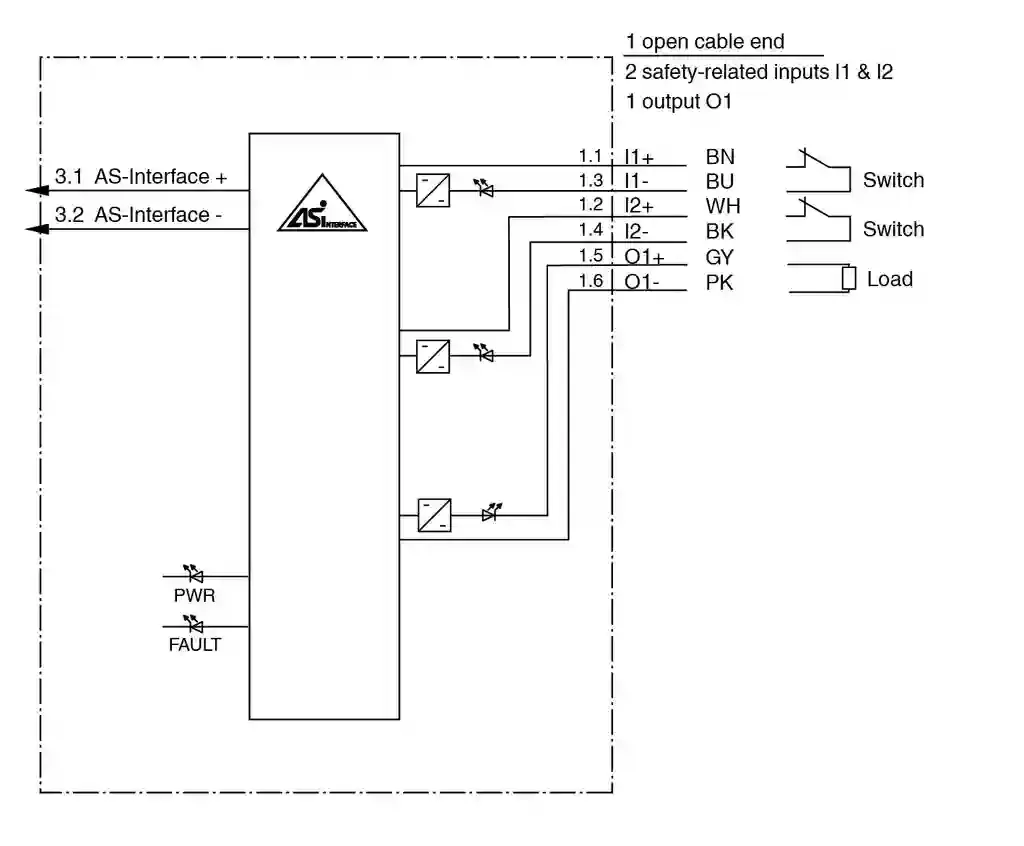 | Connection | AS-Interface: AS-Interface flat cable Inputs/outputs: open conductor ends |