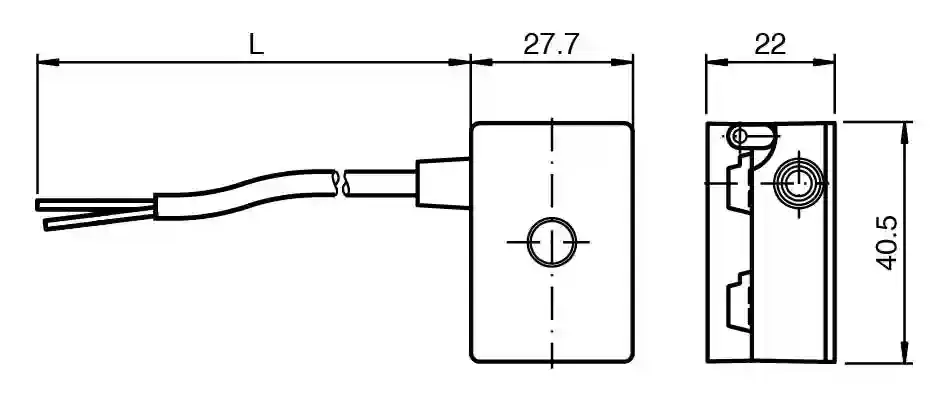 | Height21.5 mmWidth27.7 mmLength40.5 mm | |