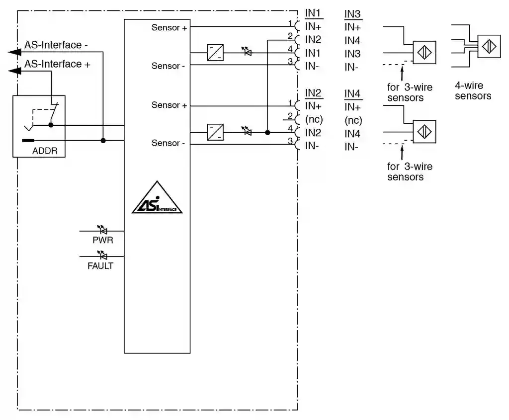 | LED PWR | AS-Interface voltage; green LEDgreen: voltage OKflashing green: address 0 |