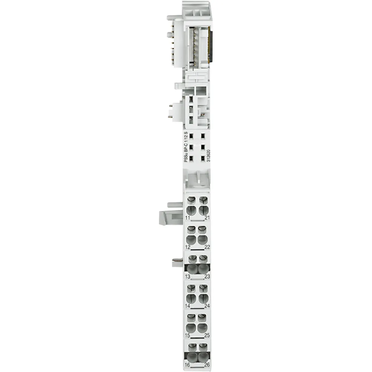 PSSu BP-C 1/12 S. Part number: 312620. Name: PSSu BP-C 1/12 S. Keywords: PSSu, base module for electronic modules, periphery, C-rail, 1-row, 6 connection levels, 12 terminals, screw connection.