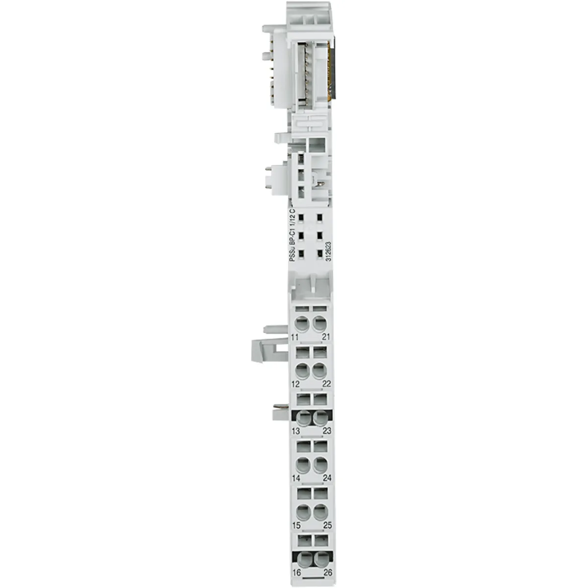 PSSu BP-C1 1/12 C. Part number: 312623. Name: PSSu BP-C1 1/12 C. Keywords: PSSu, base module for electronic modules, periphery, C-rail, 1-row, 6 connection levels, 12 terminals, spring-loaded con …