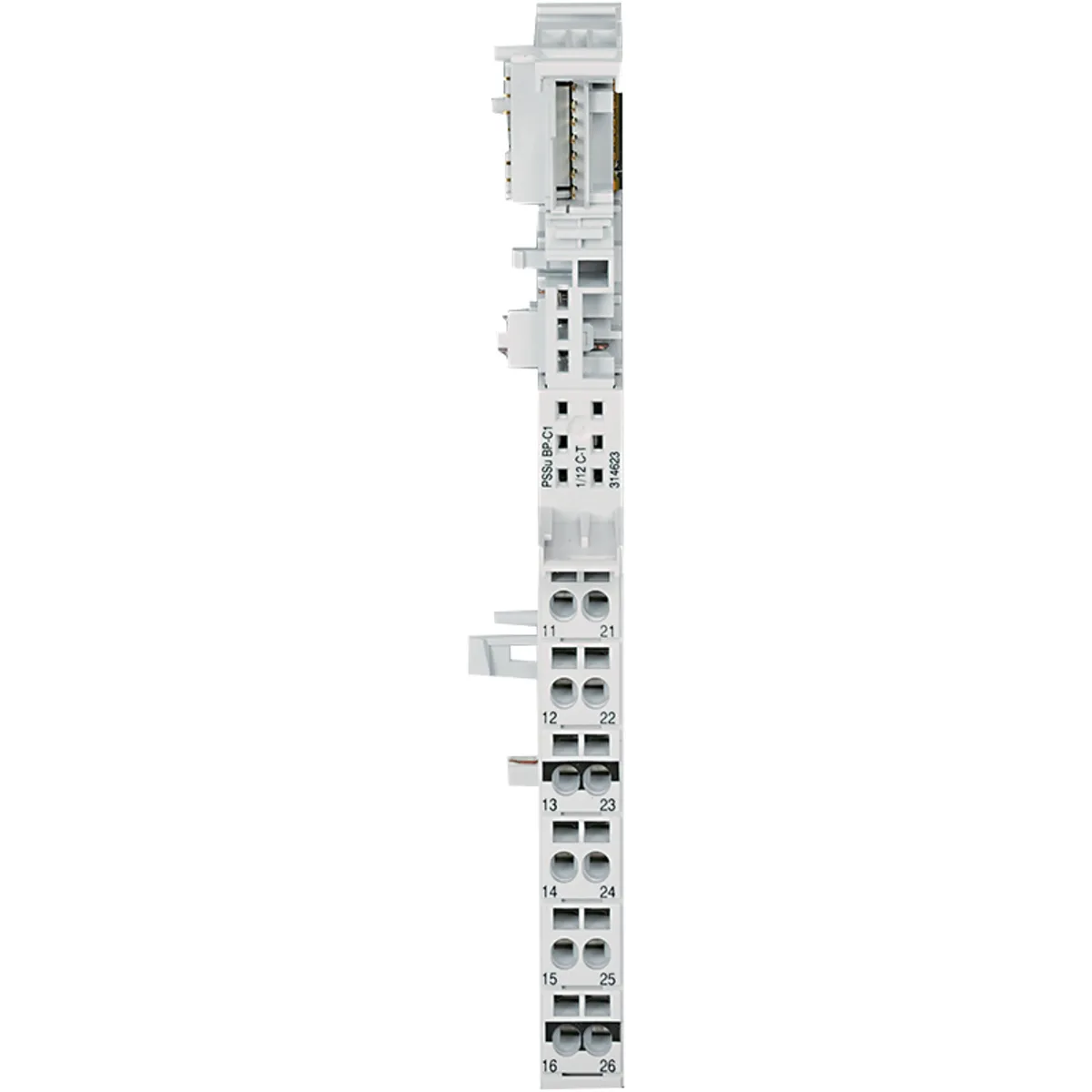 PSSu BP-C1 1/12 C-T. Part number: 314623. Name: PSSu BP-C1 1/12 C-T. Keywords: PSSu, base module for electronic modules, periphery, C-rail, 1-row, 6 connection levels, 12 terminals, spring-loaded con …