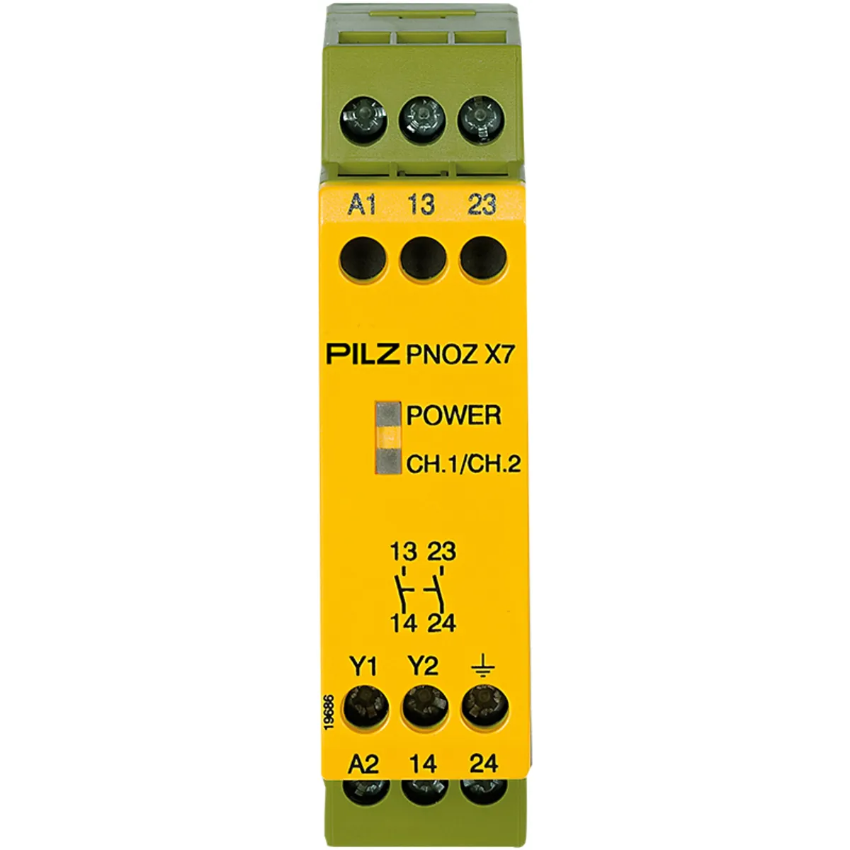 PNOZ X7 120VAC 2n/o. Part number: 774055. Name: PNOZ X7 120VAC 2n/o. Keywords: Safety relay (standalone), inputs: 1-channel wiring, outputs: 2 N/O, automatic/manual start, UB = 120 V AC, width: 22.5 ….