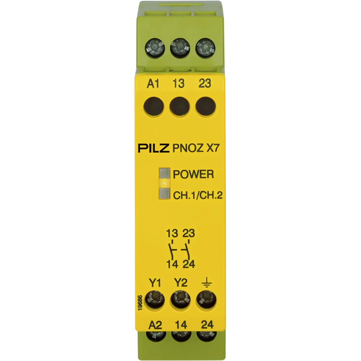 PNOZ X7 230VAC 2n/o. Part number: 774056. Name: PNOZ X7 230VAC 2n/o. Keywords: Safety relay (standalone), inputs: 1-channel wiring, outputs: 2 N/O, automatic/manual start, UB 230 V AC, width: 22.5 mm…