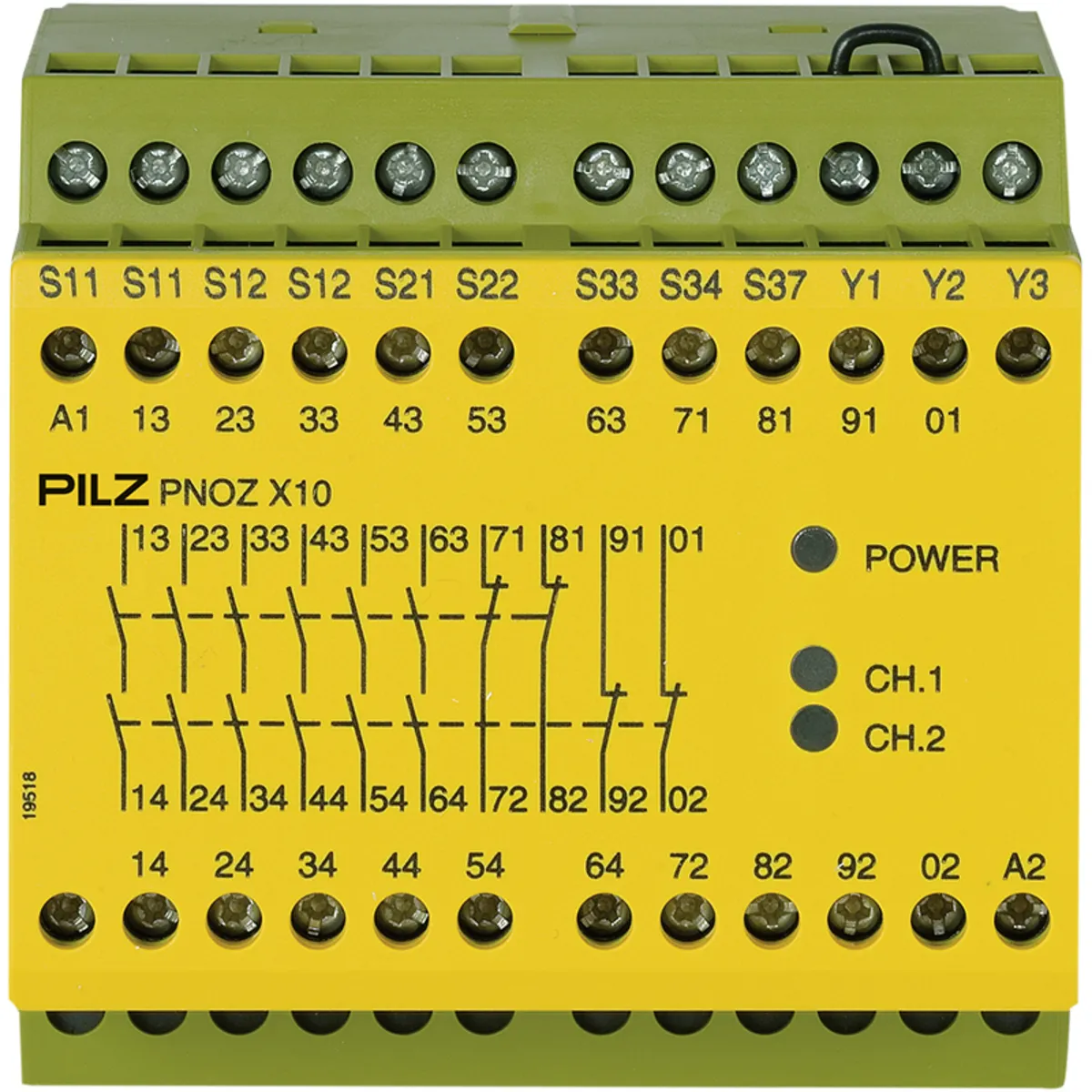PNOZ X10 24VDC 6n/o 4n/c 3LED. Part number: 774709. Name: PNOZ X10 24VDC 6n/o 4n/c 3LED. Keywords: Safety relay (standalone), inputs: 1/2-channel wiring with/without detection of shorts across contact…