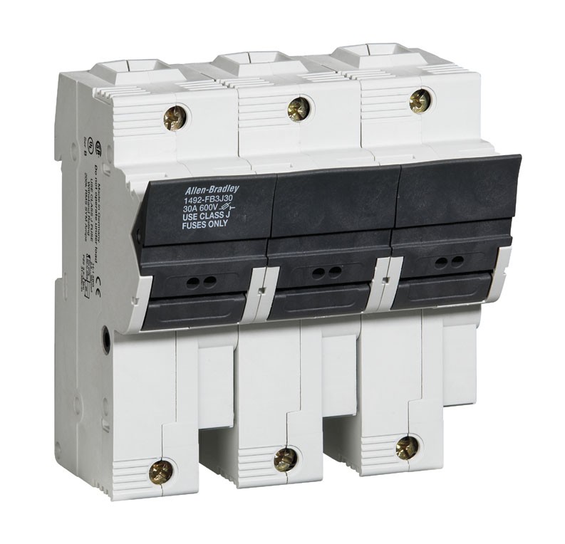 1492-FB Fuse Holder with 3 poles, Class J Type Fuses, 30A, Fuse Block without Indication, 600V AC/DC, Pkg. Qty. 2